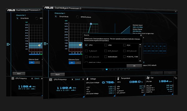 Với bo mạch chủ ASUS PRIME Z390M-PLUS, bạn kiểm soát quạt được hoàn toàn đối với các quạt thông qua Fan Expert 4 hoặc UEFL chứng nhận phương tiện của Asus. Bất kể bạn làm mát bằng không khí hoặc nước, chế độ tự động kiều khiển cấu hình thông minh tất cả các tham số với chỉ một cái nhấp chuột